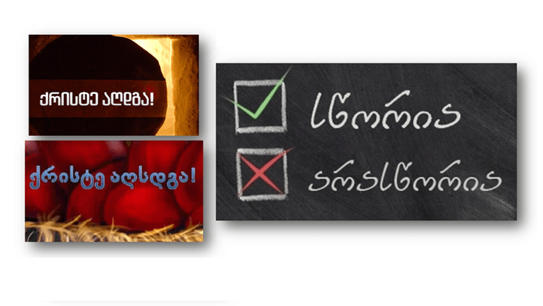 Kriste Aghdga or Kriste Aghsdga (meaning Christ has Risen in Georgian) Which one is considered to be right? There are frequent discussions about that topic. Following the grammar rules, it is correct to say ‘’Aghdga” as the verb is first personal and matches only the third subjective person. Consequently, Agdga is grammatically correct and Aghsdga is more traditional one.