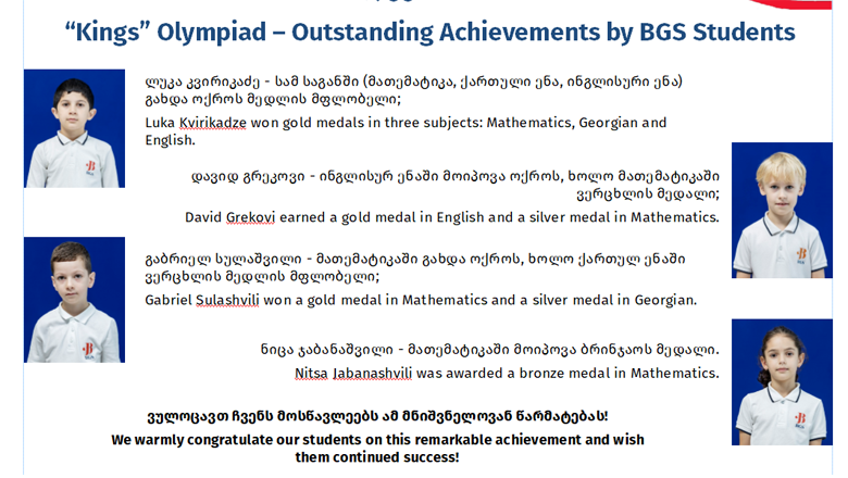 - ლუკა კვირიკაძე – სამ საგანში (მათემატიკა, ქართული ენა, ინგლისური ენა) გახდა ოქროს მედლის მფლობელი;